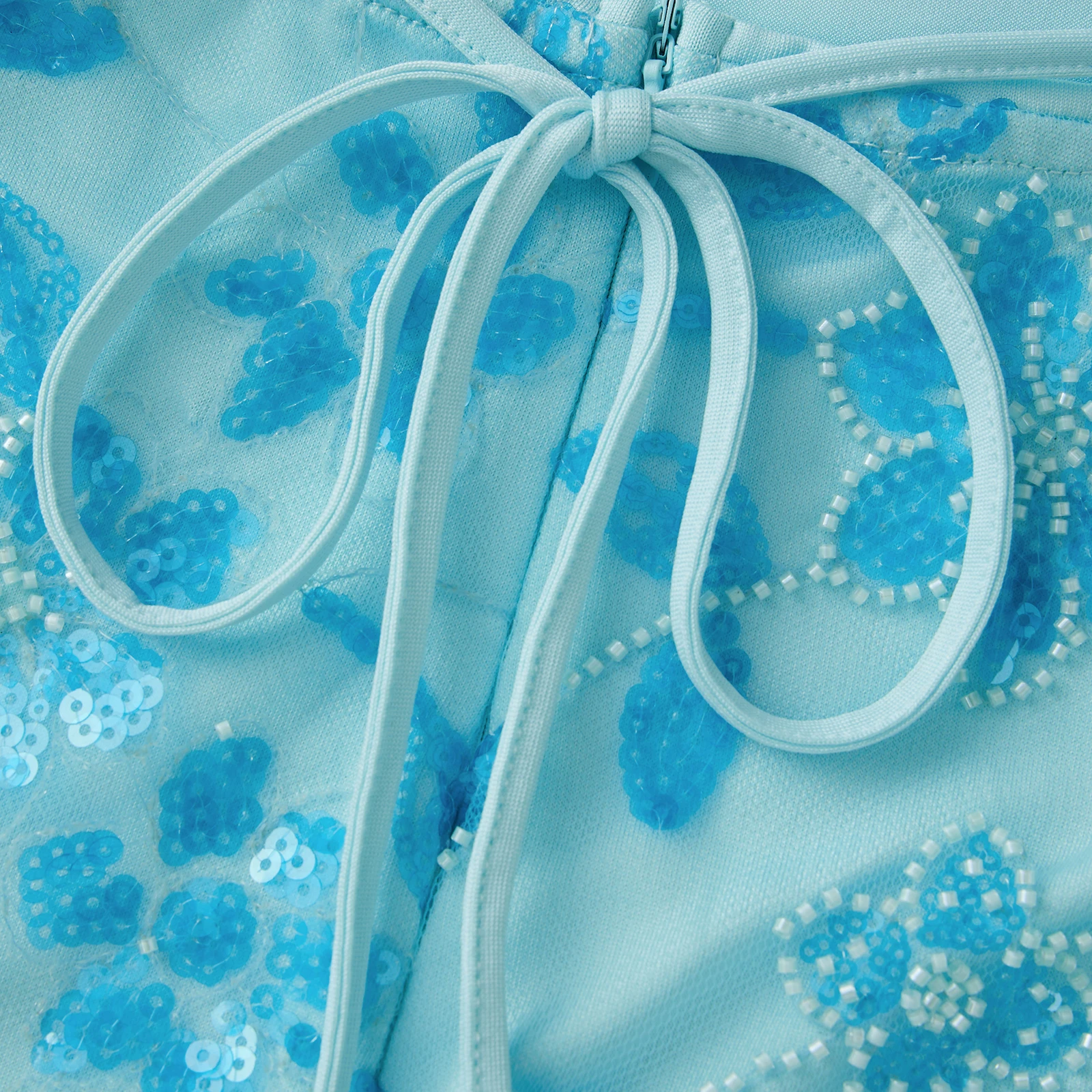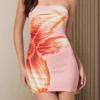 Floral Halter Mini Dress for Women Summer Fashionable Beaded Sleeveless Backless Bodycon Short Dress