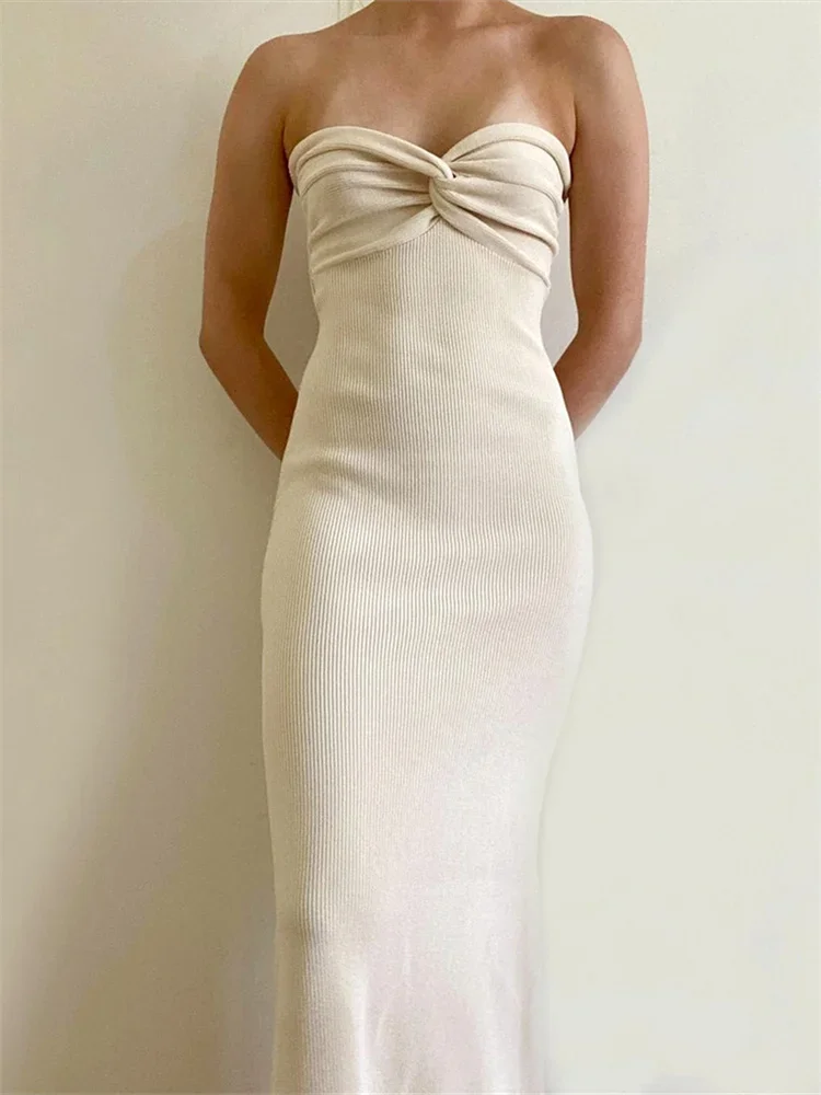 Women Y2K Knitted Long Dress Solid Color Strapless Bodycon Pencil Slit Tube Dress Summer Fall Sexy Elegant Chic Dresses Female